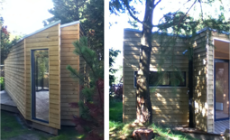 Design of a small house containing a workplace, sauna, meditation space and outdoor spa.